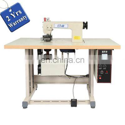 UT60 Disposable Non Woven Pillow Cover Ultrasonic Sewing Machine, table cloth ultrasound lacing equipmentVideoVideo demonstration only for referenceVideo (UT60): /watch?v=IEBCmEMLkRs Product Description 1, Apply to synthetic fabrics, lace clothing, ribbon, decoration products, handkerchief, tablecloth, curtain, bedspread, pillowcase, quilt cover, tent, raincoat, disposable operating coat and hat, disposable mask and non-woven fabric cloth etc2. Built-in PC chips, multi-circuit ultrasonic protection system to make the machine run safely3. Strong ultrasonic power with three adjustable gears (maximum, medium and minimum), meets the welding requirements of different materials and thicknesses4. The performance of the machine reaches international level with automatic frequency tracking system and ultrasonic soft-starting technology5. Variety of roller patterns, other roller designs available according to customer requirements;6. Four times faster than regular sewing machines, minimal operator training required. Features:1, Trimming: Straight or curvilinear edge cutting and edge treatment for melting, so smooth, no rough edges2. Sealing: Two or more layers of fabric stitched together without thread replacing the sewing needles, good welding strength3. Hole making: Cut out the various patterns of holes, and treatment of side melting4. Slitting: Single or more cutting of the material at the same time, and treatment of side melting without burr5. Forming: Simultaneous cutting, sealing and embossing to make production in one pass Parameters:ModelUT60/60SVoltage220V/110VInput power1800-2500WOutput Frequency20KHZRunning speed0-20m/minPattern sizeWidth: 0-60mm; Diameter: Ø50mmDimensions 1200*600*1200mmWeight90KG Detailed Images Service TeamPre-sale Service After-sale Service A: Inquiry and consulting support A: English manuel and video instruction B: Sample testing support. B: Your technians can get trained in my factoryC: Invoice and Contract confirmation. C: Engineers available for overseas if necessaryFAQ1.Q: What information should i let you know if i want to get a quotation?A: Detailed size of your finished products in Max and Min?B: Paper thickness in GSMC: Some photos of your finished products2.Q: Are you a manufacturer?A: Yes we have been manufacturing such machines over 20 years and also we are a professional exporter. 3.Q: What about the payment term?A: Mostly 30%T/T in advanced, 60% when machine is finished after inspection and last 10% against copy of shipping documents..4.Q: What is the warranty?A: Two year warranty after sales (During the warranty period, we respond for free parts dispachment and the buyer is only required to cover the courier express once the machine has any problems. However we do not respond for the consumables and parts broken by mistakingly operation)5.Q: What is your aftersale service?A: Any questions will be responded within 24 hours by email, skype, phone call or Whatsapp/Wechat (+86-18258286679). In addtion, we have professional engineer available for overseas service..6.Q:What is the delivery time?A: Mostly it takes 10 to 30 workdays after receiving the deposit and confirming the drawing or samples as required.Certifications Packaging & Shipping Contact UsYOU ARE WELCOME TO CONTACT US ANYTIME AVAILABLE. Mobile/Whatsapp/Wechat: +86-18258286679 Email: utecs@ , utecsinter@ , danielsuer@ Skype: danielsuerWeb: