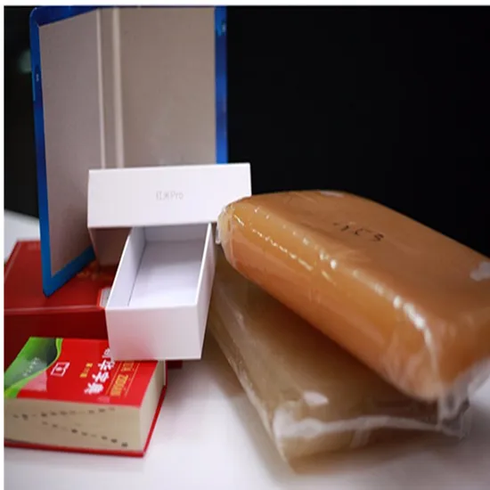 Product Description jelly glue is a type of adhesive derived from natural materials. The main component is industrial gelatin. It is widely used in industries, such as carton gift box, cosmetics boxes, hardcover book covers, photo albums, stamp albums, folders, dictionaries, musical instrument etc. According to the production process and equipment, jelly glue can be divided into. low-speed glue: Suitable for manual operation, setting time is 20-180s; Medium-speed glue: Suitable for semi-automatic machine, setting time is 10-120s. High-speed glue: Suitable for automatic machine, setting time is 1-10s.