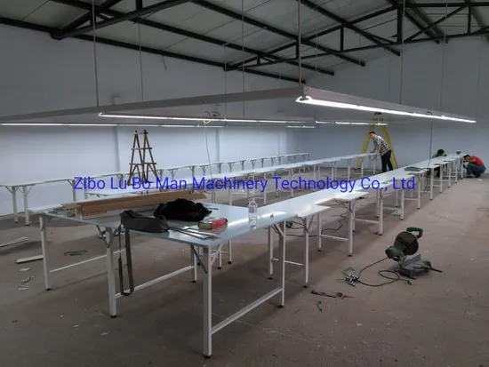 | Sewing line straight Insert center table | L1.2m*W0.6m*H0.75m | HDF; Particleboard; Plywood. | 30*50 square pipe welding | 1. T-bar; 2.Aluminium alloy; 3.Stainless steel | The table width and height can be customized according to your requirements. |