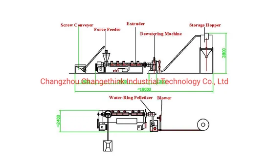 | Installed Power: 214kw Installed thermal air heater: 74kw Production Line Dimension(L*W*H): 18000*2400*3800mm This equipment is suitable for recycling PE plastic Manufacturing standards: In accordance with CE |