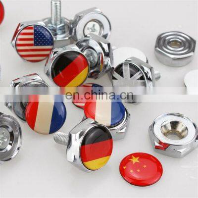 Customized Aluminum Alloy Metal 8mm Country Flag Logo Car License Plate BoltTypeCustomized Aluminum Alloy Metal 8mm Country Flag Logo Car License Plate BoltMaterialAluminum Alloy MetalCar modelFor many car modelColorsRed BlackPackageOPP Bags Size8MMUselife5-8 yearsMOQNot MOQ limitProduct Description1, All the car license plate bolt are made of aluminum alloy metal with imported high chrome finishing , never fade . 2, 3M adhesive backside, easy to install, can be used outside or inside for 10 years. 3, Welcome to OEM&ODM . 4,If you are aslo interested in other car license plate bolt, pls kindly contact us by email , we have all kinds of car brands . Our Services 1, fast delivery: 3-5 days delivery time after get your deposit . 2, special department to creat new items, every month with 30 new items are made out. 3, excellence after-sale service, tracking shippment to your door , if any quality problem from our side , we guarantee 100% refund. Company Information FAQ Q1: Why choose us ?A: We are a professional specialist for more than 21 years with rich experience and excellent aftersales service 24 hours online . 100% QC inspection Before Shipment. Q2. Can I have a sample order ? A:Yes, we welcome sample order to test and check quality. Mixed samples are acceptable. Q3. What about the lead time?A: We have most product in stock, so we can ship product out within 3 days. Q4. Do you have any MOQ limit for order?A:Low MOQ, 1pc for sample checking is available Q5. How do you ship the goods?A: Depending on the order quantity and car model ,we usually ship by Fedex,DHL,EMS,TNT, UPS and by Sea . Q6. How to deal with the faulty?A: Firstly, Our products are produced in strict quality control system and the defective rate will be less than 0.2%.Secondly, we will send new one to you if quality issue caused by us. Q7. Do you have factory?A: Yes, we have our own factory which have been establishing over 20 years, located in Baiyun District Guangzhou. Q8. What is your terms of packing?A: Generally, we pack our goods in neutral boxes and brown cartons. If you have your own design , we aslo can make for you .Contact us