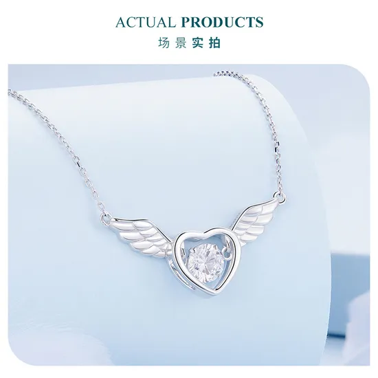 | Name | Hot selling 925 sterling silver angle love necklace with stone in rhodium plating for lady |