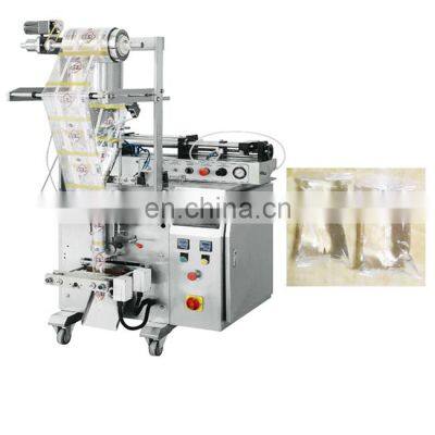100ml pouch pure water automatic packing machine liquid stick pack packing machine priceProduct DescriptionDession liquid packing machine is suitable for the packaging of various liquid and sauces, such as soup,edible oil,liquid medicine,cream,seasoning sauce,honey,shampoo and shower gel etc.According to customer needs,the bag types can be changed:back seal, three sides seal, four side seal.1. The section where the material contact is stainless steel as the body of machine is optional for complete or partial stainless steel and all out equipments have passed the CE Standard.2. Optional English or other languages screen display, easy and simple operation. 3. High-sensitivity photoelectric color tracing and digital input of cutting position get more accuracy.4. Packaging speed and length of bags can be set to some extent without further adjustment and parts changing packaging speed and length of bags can be set to some extent without further adjustment and parts changing. 5. Bag-making, filling, sealing, cutting, counting can be achieved automatically and straightly. 6. Bag-making equipment can be changed according to specific requirement of customers and products.Model NO.DS-320YMeasuringLiquid Filling PumpBag ShapeBack Sealing / 3 Sides Sealing / 4 Sides SealingPacking Speed30~50 bags/minFilling Range50~500 mmBag Length40~200 mmBag Width50~150 mmMachine SizeL)640*W)700*H)1580mmEasy Control Touch ScreenLanguage: Standard English and Chinese. Any language can be customized.PLC: Imported PLC microcomputer with interface and frequency control enables bag parameter setting more convenient and easier. Film RollerThe film can be replaced easily on the film roller.Various films adaptable: OPP/CPP,OPP/CE,MST/PE/PET/PE.Pneumatic liquid pumpthe filling weight is adjusted,the texture of the machine is #304 stainless steel for the material contact parts.It is safe andmeets with the GMP standard.According to the viscosity of the filled liquid, you can choose to replace the mechanical pump.Bag Former#304 stainless steel bag former is for shaping the film into a bag.Different bag width needs different bag former.Bag Cutting DeviceHigh speed of fine and clean cutting and sealing bags.Positioned stop function avoides sticking blades and wasting materials.According to customer needs,the bag types can be changed:back seal, three sides seal, four side seal.According to your needs, you can choose to replace or add the following configuration. For example, 3 sides sealing device, 4 sides sealing device, linking bag device, gas-filled device, easy tearing device.According to the consistency of the filling material, add a heating and stirring device or use the mechanical pump.If you want to know more about the machine, please contact me!!!SALES MANAGER: Alisa HuangMobile:008613360305717Whatsapp / Wechat: 008613360305717Related ProductsIf this machine can't meet your requirements, we have more products to recommend to you.Our CompanyCertificationsPacking & DeliveryPayment1.T/T and Western Union are accepted2.30% deposit before production and 70% balance before shipment3.All banking charges outside China are on buyersShipping1.Upon receipt of payment , delivery date will be in 15-30 working days,2.By Air, by Sea or by Express (DHL etc)3.Shipment cost will depend on the destination, shipment way and the weight of the goodsFAQQ1:Do you have manual or operation video for us to know more about the machine? Yes, not only manual or operation video, 3D drawing also available to make as per your design,also the video we can make of testing the material from our packaging machine if your packing goods easier for us to find from our local market. Q2:How can I trust you for the first time business ?Please note our above business license and certificate. And if you don't trust us, then we can use Alibaba trade assurance service, guarantee your money, and guarantee your machine's on-time delivery and machine quality.Q3:Is engineer available to serve oversea?Yes, but the travel fee is paid by you. So actually to save your cost, we will send you a video of full details machine installation and assist you till the end.Q4:How can we make sure about the machine quality after we put the order?Before delivery, we will send you the pictures and videos for you to check the quality, and also you can arrange for quality checking by yourself or by your contacts in China.Q5:Will you provides the door to door service?Yes. Please offer us your final destination, we will check with our agent to see if it available, and most of the area is ok for us to clearing and sending in your countries.Our Service