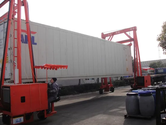 Container crane is a kind of lowest work cost crane of container, special suit for container plastform. This crane adopts multicyliner diesel engine and features low operating noise and low vehicle vibration. The main body consists of a steel frame, steel wire rope, the hydraulic motor of the hydraulic transmission system, gear pump, steering cylinder, lifting cylinder, double-acting balance valve, and walking solid tire. The lifting mechanism adopts four cylinders with a diameter of 180 mm, which have a large lifting capacity, a small system pressure, a stable and safe lifting and lowering, and high loading and unloading efficiency. It adopts two-wheel drive, four-wheel steering, and a large rotation angle of up to 110 degrees. It can realize steering and translation at any angle, and the turning radius is small. The control system consists of a complete set of the valve body and operating rod, which is simple, convenient, and flexible to operate.
