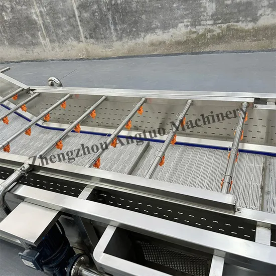 The conveyor belt is used to transport cleaned food and is composed of 304 stainless steel mesh belt or plastic chain plate, which has the characteristics of corrosion resistance and wear resistance. Food enters the cleaning tank through a conveyor belt and is automatically output after cleaning is complete.