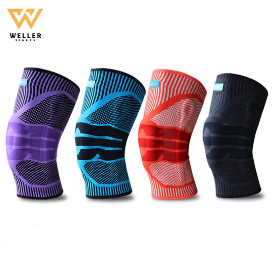 Nylon knitted knee sleeve brace with gel pad stabilizer knee support straps for basketball sport protection pain