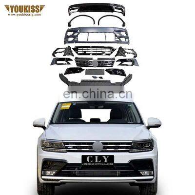 Product DescriptionSpecificationSubjectGenuine Body Kits For Volkswagen Tiguan Change R-line Front Car Bumpers With Grille Wheel Arches License Plate Rear DiffuserProduct nameBody KitsMOQ1 set Stockin stockDelivery timeAfter you finish the payment, we can deliver for you at any timeDetails ImagesPacking & DeliveryAs for the delivery, we provide DHL, FEDEX, TNT, UPS, EMS... also could by Air, by seaIt's up to you, if you are not in a hurry, we suggest you choose sea.Company Profile If you have any questions, please feel free to contact us, we will uphold customer-oriented philosophy to provide you with the most professional, most comprehensive and highest quality service。FAQ1. how can we guarantee quality?Always a pre-production sample before mass production;Always final Inspection before shipment;2. why should you buy from us not from other suppliers? a.We have the first class equipment b. We will make the product to satisfy the customer Hold the flag of continuous improvementc.The strength support for realizing the higher ideal, from this moment we shall be of one mind and seek more higher better quality and more excellent credit and to realize the perfection in the unceasing creation. d.We provide car body kits, front grille, diffuser ,rear view mirror shell, spoiler, exhaust pipe, wheel hub and carbon fiber products and carbon fiber interior trim. e.We provide you 24 hours customer servicef.After sending, we will track the products for you. When you got the goods, test them,install, and give me a feedback.If you have any questions about the products, contact with us, we will offer the solve way for you.3. what services can we provide? Accepted Delivery Terms: FOB, CFR, CIF, EXW, FAS, CIP, FCA, Express Delivery; Accepted Payment Currency: USD, EUR, JPY, CAD, AUD, HKD, GBP, CNY, CHF; Accepted Payment Type: T/T,L/C,Credit Card,Western Union,Cash; Language Spoken:English,Chinese4: What about the delivery time?1-7 days ( most of products are in stock)5: Do you have any certificate?Yes, like Alibaba certification.