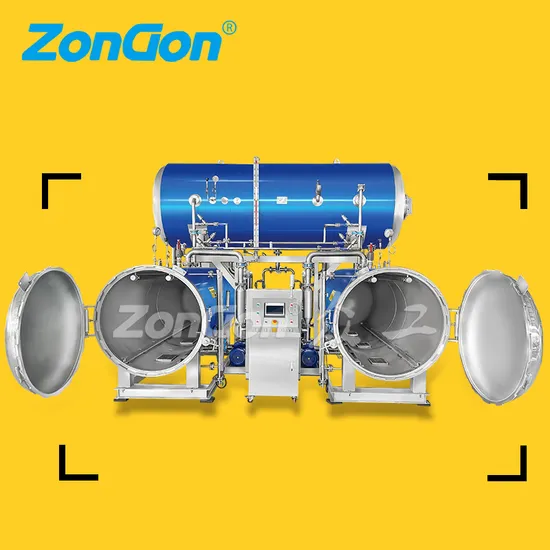 Water immersion retort uses the unique liquid flow switching technology to improve the uniformity of temperature inside the retort vessel. Hot water is prepared in advance in the hot water tank to start the sterilization process at high temperature and achieve the fast temperature rising, after sterilization, hot water is recycled and pumped back to the hot water tank to achieve the purpose of energy-saving.