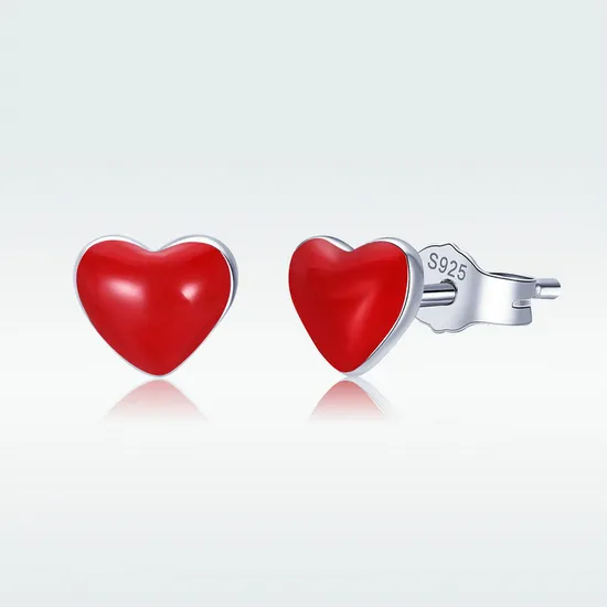 | Name | Wholesale 925 sterling silver love red heart stud earring with red enamel for lady |