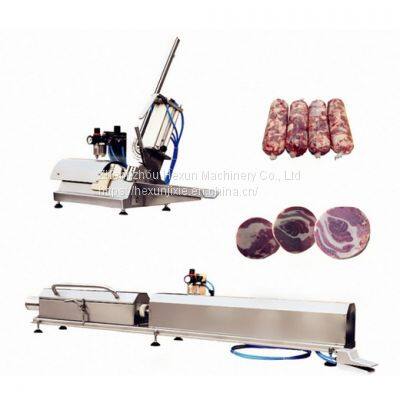 Meat pneumatic bagging machine, is a meat bagging filling model, this machine can pre-package meat products, equipped with pneumatic tension punch machine for tightening sealing.