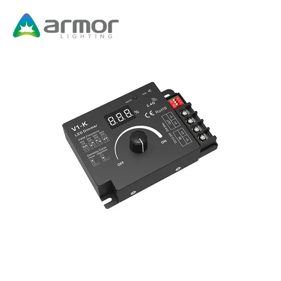 Features Rotary dimmer with digital numeric display, visible dimming level. Match with RF 2.4G single zone or multiple zone dimming remote control optional. 0-100% dimming smoothly without any >ash. High load current up to 20A. Logarithmic or linear dimming curve selectable. PWM frequency 500Hz, 2kHz, 8kHz or 16kHz selectable. Over-heat / Over-load / Short circuit protection, recover automatically. Light on/off fade time 3s selectable.