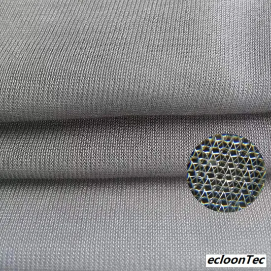 Radiation-proof electromagnetic shielding silver fiber mesh is a warp knitted net cloth produced by 100% silver fiber, which is light and breathable, and the electromagnetic shielding value can reach 40-50DB, which can be used to produce radiation-proof electromagnetic shielding mosquito nets, antibacterial filters, and conductive materials in smart wearable products. Silver is bonded to the base material polyamide fiber through intermolecular forces, with high fastness, washing resistance, and silver will not fall off.