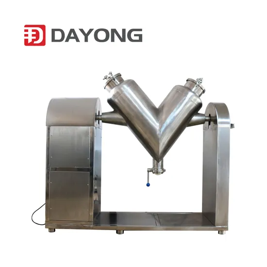 * Machine MaterialV shape mixer machine is made of high quality 304 stainless steel, 316 stainless steel can be selected according to customer needs. Comply with GMP requirements, with CE certification.Double feed port, feed more convenient, mix more quickly.