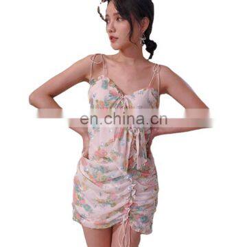 TWOTWINSTYLE Print Sleeveless Sexy Strap High Waist Bandages Slim Asymmetrical Mini Dress women