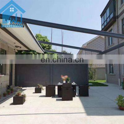 Product NameModern design bioclimatic motorized aluminium louvered pergolaControl wayMotorized with remote controlFunctionWaterproof ,sunshade,windproof ,snowproof, house space extendingApplicationVilla,balcony ,garden ,backyard ,roof ,restaurant,decking ,swimming pool and so onWind Resistant180-220 KM/HSnow Loading60-100cmSizePopular standard size:3x3x2.5、4x3x2.5、5x3x2.5、6x3x2.5 or can be customizedOther related materialsSide screen/curtains, side shutter ,LED lights,heater ,fans,glass doors,outdoor furnitureInstallationWe will provide very detailed drawing and video for the installationOthers1.MOQ:1 set, we welcome small order 2.Production: we are factory , we can provide 10-15days fast production time 3.Warrenty:10 years4.Color:White, Grey, Black, or customized colors availableFAQQ1. Is this pvc folding pergola easy to install?A: We have the assembly manual instruction specifically made according to your project site. It's a DIY product designed to be easily assembled and we can provide installation video.Q2. How long is your products' warranty?A: All our products have 10 years warranty.Q3:How to guarantee the quality of the products?A:We have our own QC team to control the products quality for all our clients'orders before loading.Q4. How can i get a price of needed pvc folding pergola?A: Please give the exactly size and quantity of your required pvc folding pergola. We can give you a detail quotation and free design solution based on your requirements.Q5.I am a small wholesaler, do you accept small order?A: It's no problem is you are a small wholesaler, we would like to grow up with you together and our MOQ is 1 set.Q6. Is my first time to export from China, what if i have no experience?A: Don t worry, we have very professional sale will guide for and we can provide one stop solution including deliver the door to your home address with customs.Q7. What kind of payment terms would you accept?A: We usually accept T/T, L/C, Western Union, etc. If you prefer other payments terms, please feel free to discuss with us.Q8. What if i meet the problem after installing and using this pvc folding pergola?A: As our principle is our business had been built on hoes & backed by customer service.we are verified supplier in Alibaba. com and our can provide 10 years warranty, so if you meet any problem for using this pvc folding pergola,welcome to contact.