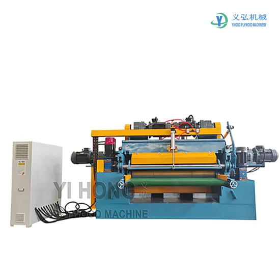 Spindle-less veneer peeling lathe is integrated peeling and cutting function. Peeling wood veneer while the logs are rotated by driving both single and double rollers. Meanwhile the internal rotary clipper performs precise cutting under PLC control.