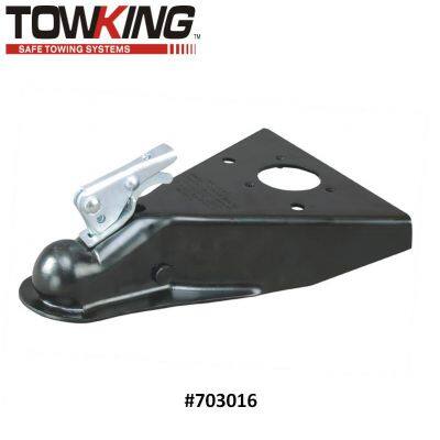 Products DescriptionTOWKING A Frame 5000lbs 2" Trailer Ball Connector Heavy Duty Trailer Coupler • Weld onto frame members set at 50-degree angles • Contain jack mounting holes • Made of high quality material• Every requirement from our clients is treated carefully and feedback presented quickly by our experienced staff. • Every order's quality is highly controlled by our skilled QC/QA team. • Tensile test is necessary for each batchItem No.FinishBall sizeChanel WidthSAE ClassTrailer GVW703016Primed2"A-frameIII5,000lbs703026E-coating2"A-frameIV8,000lbs703021E-coating2-5/16"A-frameIV10,000lbs703027E-coating2-5/16"A-frameIV14,000lbsOur AdvantagesTOWKING, a well-reputed brand owned by a Taiwanese group – Intradin, has been committed to the industry of trailer parts and towing accessories since year 2000.As one of leading manufacturers, all the products under our brand have undergone significant safety and quality checks using ISO9001 standards.SAE tests are conducted in-house and by third-party labs in the U.S.A.All TOWKING products are offering a one-year warranty assuring manufacturing to be free of defects in material and workmanship.Our US$2,000,000 Product Liability Insurance also confirms our commitment to you.TOWKING is committed to providing the highest quality products with highly competitive prices which are promptly delivered to your door. We will not substitute price for quality we want only the best for our dedicated customers.Feel free to contact us for further information!R&D CAPABILITIES* Experienced R & D engineers* Ability to do OEM customized designs* Patents and copyrights on original inventions* Comprehensive design capabilities covering mechanics, electricity, and industrial outlook* Experienced in world popular CAD software Trial-production Workshop for Producing* Prototype Sample, Tooling and Fixtures* Patents and copyrights on original inventionsMANUFACTURING CAPABILITIES* Continuous improvement on lean production management* Automatic assembly lines specially in jacks etc towing accessories' assembly* 5S site management standard* Comprehensive automatic equipment covering machining, welding, powder coating, plastic injection and assembly.QUALITY CONTROL * Using IS09001 standards,SAE tests are conducted in-house and by third-party labs in the USA.* Offering a one-year warranty assuring manufacturing to be free of defects in material and workmanship* US$2,000,000 Product Liability Insurance Certificates for Quality, Safety and EnvironmentCertificationsISO 9001 :2008 by tuv nordTestlink Services,TNCSAE Test passed US$2 Million Product Liability Insurance WordwideCertifiate For Environmental Managent systemCertificate For Quality Management SystemFAQ 1. Q: What's your Lead Time of mass production? A: Normally our lead time is 35-45 days. 2. Q: Can you provide free samples? A: Yes, one or two free samples are available. 3. Q: What's your MOQ? A: Normally, for jack, the MOQ is 200pcs, while for winches, hitches, bike carriers, and other accessories, it will be 500pcs. Of course, the price will be different according to different quantity. 4. Q: What's your Payment Terms? A: T/T and L/C are OK, but for small order we prefer 100% T/T before shipment. 5. Q:Can we customize according to our request? A: Yes, as we also have strong R&D capability .And we could develop new production according to your request. Related Products2000 lb Top Wind A Frame Trailer Jack 1000 Lb Trailer Sidewind Swivel Jack5000lb Swivel Trailer Jack