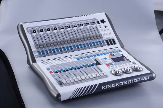 Genuine King Kong Controller Display <SETUP> Chinese and English display can be switched <SHAPE> 227 Build-in Shape. Easily create shapes RDM: Can set dmx address on Console Art-net Port: With build-in Simulator Can run 12 playback scenes simultaneous , maximum 120 scenes Adopt imported encoder, accurate to data DMX512 signal output, 3 pin XLR Light library is programmed on the console, its convenient and quick MIDI, Easy to achieve sound and light synchronization Time mode, setting fade in and fade out time independently Data backup, can be easily upgraded remotely