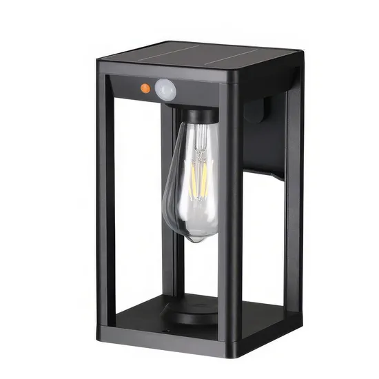 Solar Wall Lights Outdoor & Include Warm and White Bulb This solar porch light features a modern, minimalist design with a slender square shape and clear panels on all four sides, making it ideal for outdoor lighting and decoration. This solar outdoor wall light adds a motion sensor and mode switching feature that is not available in other wired fixtures. The solar powered design provides warm lighting for your home by simply installing it where the sunlight, charging it during the day and automatically lighting it up at night, saving energy and saving you money on your electric bill. (Includes one warm white and cool white E26 type bulb