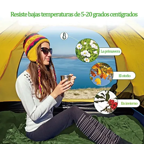 Descripción Se utilizan durante 3 estaciones: nuestros sacos de dormir se pueden utilizar durante 3 temporadas. Están diseñados para temperaturas de 10 a 20 grados centígrados. Además, estos sacos también tienen un diseño resistente a la intemperie para mantenerte caliente incluso en condiciones extremas y evitar que se humedezca. Esto se logra gracias a la tecnología de doble relleno. Nuestros sacos de dormir están diseñados para garantizar que, después de un agotador día de senderismo, senderismo, viajes o cualquier otra exploración, puedas dormir bien y relajadamente por la noche.
