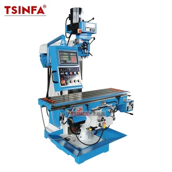 This turret milling machine is a lightweight universal metal cutting machine that can mill flat surfaces, inclined surfaces, grooves, and splines of medium and small parts. Widely used in industries such as mechanical processing, molds, instruments, and meters High spindle speed and high precision. The milling head can rotate