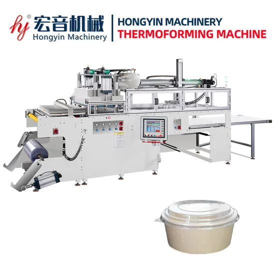 HY-70/95 is suitable for BOPS, PS, APET, PVC, PLA and other thermoplastic materials.It can form a variety of lids, boxes, dishes, trays,such as the lids of fast food box, sushi, paper bowl, aluminum foil, the trays of moon cake,pastry, supermarket,and it also can produce medical device packaging,like oral liquid tray, medicine injection tray.