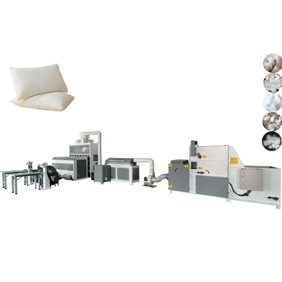 Product Description The fiber pillow filling production line consists of an automatic opening and feeding machine ,a pillow core filling machine, and a fiber ball machine .The total floor area is about 16 square meters. Applicable materials: 3D-15D high-fiber cotton, velvet and kapok (length 10-80mm), elastic latex particles, high-elasticity sponge particles, feathers and their mixtures. 1-5 materials can be mixed for filling.