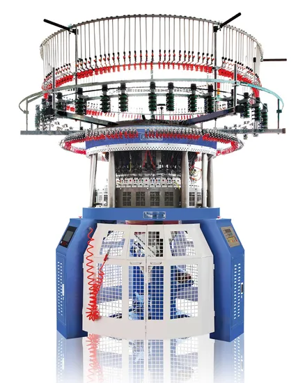 It is double jacquard circular knitting machine. It have transfer rib & auto stripper.