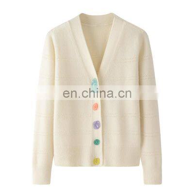 Erdos High Quality 100% Cashmere Cardigan for Women Elegant Winter V-Neck Sweater with Button Decoration Custom Logo on Front