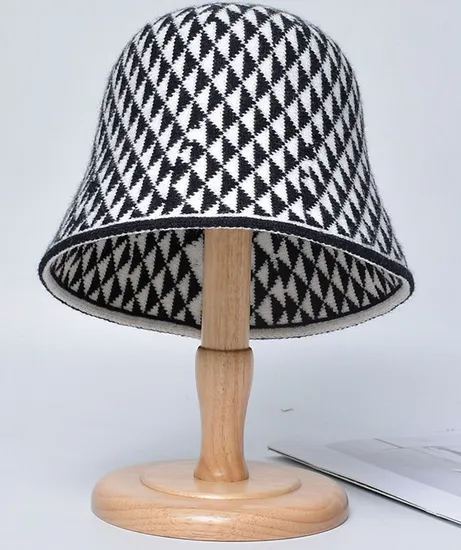 Women's Autumn and Winter Checkered Bucket Hat Knitted Woolen HatProduct Description