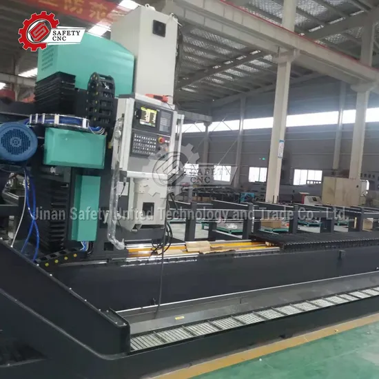 This machine is suitable to the drilling of U-shaped steel beams, channel steel, rectangular pipes, steel plates, steel rails, and round pipes in the production field of building structural steel structures.