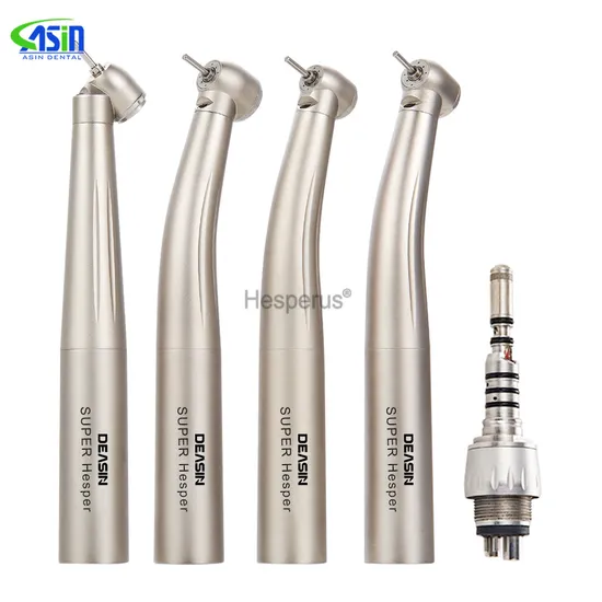 Product highlights It adopts optical fiber rod to guide light, with high efficiency of transmitting light source, and can be sterilized by high-pressure steam sterilizer. It adopts quick change design, which is convenient to use. It can quickly switch high-speed mobile phones and rotate 360 ° freely. It can be disinfected repeatedly under high temperature and high pressure. The stamping back cover is made of stainless steel, which is more durable, anti falling off and single point water column The light guide transmission light source is naturally bright, which can more clearly see the conditions of cavities and caries, make it easier to identify and improve the efficiency of precision operation A complete set of mobile phones with complete models and universal connectors can meet the needs of all-round tooth preparation without replacing the connectors