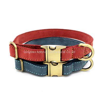 classical designed red leather dog collars with bronze quick release buckle