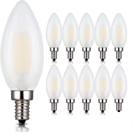 Specification The led candelabra bulbs give off 360°beam angle 2700K warm white cosy and comfortable lighting with standard E12 base, higher CRI, no glare and harsh shadows, bright but not blinding. Dimmable Candelabra LED Bulb is compatible with most dimmers, Smooth dimming from 10-100%, the brightness can be changed between 80-450 lumens, without radiation and flicker, great for chandeliers, ceiling fan, wall sconces, pendant light, foyer light. Energy Saving 4W Equivalent to 40W incandescent light bulb, Low power, energy-saving, high efficiency, good temperature resistance, saving over 90% on electricity bill of lighting in an average lifespan of 25000 hours. Applicable Occasion Vintage LED filament bulb made of high transmittance transparent glass, perfect for your home or office decoration, dining room, hallway, utility room, living room, bedroom, entryway, porch, cafes, bars, art galleries. Serve Our customer service will respond in 12-48 hours if you have any issues with the bulbs, and we will offer replacement bulbs or refund for any defects.