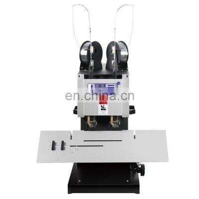 Product DescriptionSWS-2 Double-head wire staper notebook making binding machineFeatures:1, double nail head wire saddle binding machine, can be nailed, flat.2, exquisite design, simple operation, high work efficiency3, users install orders double books, books, magazines and brochures, widely used in various types of government units, such as print shops, digital graphic shops and printing factories. parameter:SWS-2 Double-head wire staper notebook making binding machinemodelSWS-2Binding speed0-80 beats / minwire specifications24#,25#,26# coiled wireBinding thickness0.2-5mmStaper width13mmPower supply220V/50HZ/100WMachine size400X400X630mmweight70KG product details related productFAQ1.Are you a factory or trading company ?Yes, we are factory. Our factory located in Hangzhou.45 45 minutes from "Hanghou Internatil Airport "to our factory. All our clients, from home or abroad, are warmly welcome to visit us!2.How does your factory do regarding quality control?Quality is priority. Our factory always attach great importance to quality controlling from the verybeginning to the very end. Our factory has gained CQC, ISO, SGS,FSC authentication3.Can you give us discount if we make big order?As a factory, we will provide offer with MOQ. If the quantity less than MOQ, we will add inland freight. If the quantity more than MOQ, we can negotiable the price.4.How can i get some samples ?We are honored to offer you sample to test it, around 4-5days arrived your hand after receive payment.5.How to pay money?We accept T/T, WESTERNUNION, WIRE TRANSFER, PAYPAL, 30% in advance,70% before shipment.6.CanImakeaOEMorder?!Wecansupplydifferentsizes.ourproductscanbecustomized with LOGO, PACKAGE, COLOR, etc.Company InformationHangzhou Sanming Electromechanical Co., Ltd., found in April of 2005, is an enterprise integrating R&D, production, sales and service of advertising and office printing equipment. It focuses on glue binding machines and paper cutting machines of self-owned brand "Mingyue", "Cailiwang" and "Samsmoon". After over 14 years of development to more than 100 employees and 5000 square meters factory, "Mingyue" glue binding machines and paper cutting machines have been widely accepted by retailers and customers. Having attached great importance to product R&D and technological talent cultivation since establishment, Sanming is now in possession of a full set of product development and manufacturing technology. We provide not only factory standard machines, but also support OEM & ODM cooperation and service. Perfect quality, excellent service, impeccable technology and reasonable price make Sanming a leading enterprise in the printing industry. Packaging & Shipping5HC-A4]Automatic perfect glue binding machine with spine & side gl