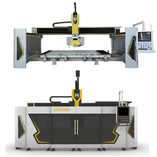 This is a high-end Automatic 5 Axis CNC Stone Cutting Machine for Processing Granite, Marble. Artificial Stone, Sintered Stone, etc. A Camera is equiped to position Plates automatically and help calculate the size of workpieces. The Machine Head can rotate 0~360°, Tilt 0~90°, enable Processing at various Angles and directions. It adopts CNC system, together with an industrial Computer, makes stone Production totally automatic. Operators can Cutting stone easily. As it's such an user-friendly machine, it gains growing popularity in building industry, home decoration industry, etc. We provide OEM/ODM service. Option: own system or ESA hardware with Pegasus software from Italy.