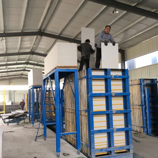 1.Large capacity than horizontal mold car 2.Double function, can produce both solid wall panel and composite wall panel 3.Small land space .vertical type mold car can save land area 4.About demolding: each time can de-mold one panel Size: