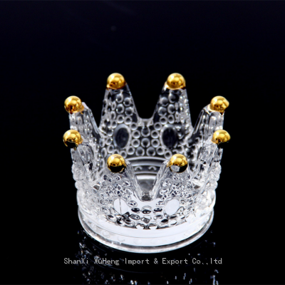 Crown Shaped Decorative Glass Candle Holder Gold Rimmed Clear Glass Ashtray Vintage Glass Candlestick