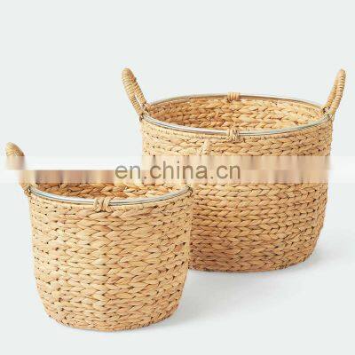 Best Price Hand-Woven from natural water hyacinth Storage Basket With metal frame and Handle vietnam cheap wholesale