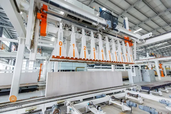 The cakes that have been steamed out of the autoclave are sorted, palletized, packed and transported to the storage yard by the packaging and conveying equipments after being separated.