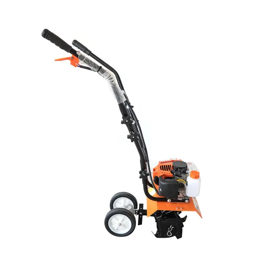 This mini cultivator is designed with two rear wheels,so convenient for users to push the machinery;the mudguard can prevent mud from splashing during operation.