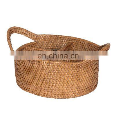 Hot Woven OVAL RATTAN UTENSIL CADDY Basket Boho Decor High Quality four compartments Wholesale Vietnam Supplier