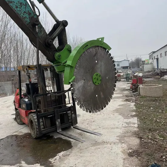 Excavator disc saw is connected with the excavator through the high pressure oil pipe and driven by the excavator. It is widely used in cutting granite, quartzite, a small amount of reinforced concrete, forest trees, etc. It can cut the material in the vertical direction and the horizontal direction. It can complete cutitng operation while walking by the excavator.