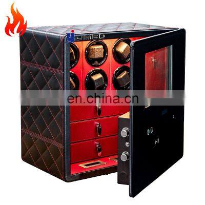 Products DescriptionWatch winder*Product NameJimbo luxury leader leather 9 slots automtic rotating motor watch winder safe*Brand NameJimbo*Product ModelWT Series*SizeH414*W433*D234mmWeight42 kg*MateritalHigh quality cold rolled steel sheet Q235*CertificateCE/ISO 1182/ROHS/FCC*Available colorWhite , Black , body and door can be in different colors*Packing5 layer standard export carton with thickened foam*Main productsFireproof safe, Bulglarproof safe, Home safe ,Vault door, Watch winder safe, Hotel safe box, Steel Lockers, Filing CabinetsProduct features:1.Alarm system; 2.Motion sensor; 3.Digital security lock; 4.Large storage drawer; 5.2 multi-purpose compartments; 6.LED interior light; 7.9 Independently programmed winder rotors; 8.Soft polyurethane watch holders; 9.3 winding directions; 10.15 winding programs; 11.LCD display with touch control;Recommend ProductsCompany ProfileOur TeamProduct packagingFAQProduction relatedIf you have any other questions, we would be more than happy to answer them for you. Please contact us below:Mrs. AnnEmail: annie@jimbosafe.com / Jessica@jimbosafe.com / sales01@jimbosafe.comMob & Wechat & WhatsAPP ::+861666567569Q: Do you provide samples?A: We can provide a sample with freight and handling charges at your expense.Q: How do you send your samples?A: We usually send via international couriers such as DHL, FedEx or UPS. We can also work with you if you have other alternative arrangements.Q: What is your lead time?A: Our production lead time is typically between 25 to 45 days from receiving payment, depending on chosen items, quantities and specific requirements. We can have off the shelf goods ready to be shipped in 5 to 10 days if there are available stock and no change request.Q: Is there any warranty offered for the product?A: A two-year Limited free-warranty is offered.Q: What are your payment terms?A: We can work with L/C or 30% deposit upon ordering and remaining balance prior to shipping of products. We can provide photos of finished goods and also accept on site final inspection.
