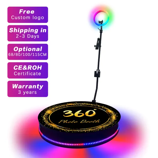 Functions of 360 photo booths Many 360 photo booths come with an auto-rotation feature that allows the user to set the speed, direction, and duration of the rotation and then let the turntable complete the rotation process automatically. To facilitate user operation, the booth is equipped with a remote control. These remote controls can control all the movements of the turntable. In order to achieve the ideal shooting effect, the selfie turntable not only provides fill light but also prepares different LED lights for the user to choose from. Users can mix and match the colors and patterns of these LED lights. The selfie stick on the self-timer can be adapted to a variety of devices, including cell phones, tablets, and cameras. These selfie sticks can also be rotated at different angles to meet the user's different photo needs. This is critical in multi-person shoots. In addition, some selfie stands can be connected to apps. These apps can help users manage and upload their work.