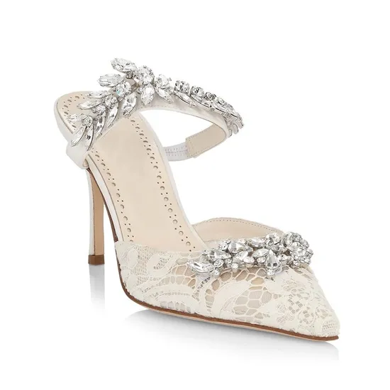 Wholesale Women's High Fashion Slingbacks Heels Pointed Shallow Mouth Pearl Particle PVC Open Heel Sandals for Women