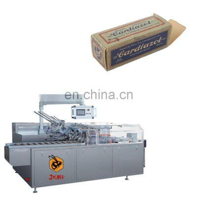 JKMF Automatic Carton Box Packing Machine Cartoning Machine Products DescriptionJKMF automatic cartoning machine can achieve full automatic products conveying & feeding, flat carton feeding, carton opening, products pushing, carton folding, carton closing, finished carton package discharging.Machine InformationAutomatic Box Cartoning Machine is a hot sale product developed and manufactured by our company. It is applied to a variety of foods, toys, cosmetics, electronics and daily necessities. Box packing machineJK-Box sizeL:65~350 mmW:30~350 mmH:15~180 mmWrapping speed40~70 box/minGas source0.5~0.8 MpaMachine weight1300KGMachine power220V, 50HZLarge capacity storage box rackWith the long boxes' feeding shelf design, you can place up to 2000 pcs boxes, the machine will alarm and stop automatically whenthe boxes are going to running out.Sensor Identify the product The box storage shelf will stop to feed boxes once there is no products get detected on the conveyor, which will prevent from the box wasting.Automatic feeding device Pneumatic manipulator can fill materials accurately and at a high speed.Adjustable sealing device With the convenient adjustment design, you can easily to complete the adjustment for the different sizes boxes in 1 min.Why Choose UsJIKE BEE MACHINERY has a professional team to provide customers with various packaging solutions. Fully understanding the needs of customers,engineers design the most suitable solution. We have our own processing and assembly workshop and quality inspection and debugging process to ensure the quality of the machine. After acceptance by the customer, they are packed in international standard wooden cases and shipped.Our technical team has carefully filmed more than 100 installation and commissioning videos of various accessories and complete machines, providing video training guarantee services for the equipment permanently.We will package the machine's instruction manual and a USB flash drive with machine operation videos together with the machine.Ensure that you can use the machine as soon as you receive it. If you have something you don't understand, our after-sales team will also help you answer in time.We package and ship the machines in accordance with export requirements.1.Bottom fixed, avoiding shaking and damaging.2.Wrap whole machine in transparent film.3.Packed by fumigated wooden case, meeting export standard.Company ProfileFoshan Jike Bee Automation Equipment Co., Ltd. is a manufacturer of automatic packaging equipment.We are a production-oriented enterprises focused on product innovation, factory direct sales and perfect after-sales service in one.The automatic packaging equipment for granule, powder, liquid and sauce produced by the Jason company is at the advanced level of the industry,it can be customized production automatic material packaging line for all kinds of products .Mainly applicable to: food, hardware, drugs, daily chemicals, pesticides, fruits and vegetables, cosmetics, other industries.The company has its own patent and product technical certification, which can bring customers high quality equipment and worthy of customer trust.Customer PhotosOur customers have covered more than 80 countries around the world.And give us unanimous praise.CertificationsFAQQ1:Do you have manual or operation video for us to know more about the machine? Yes, not only manual or operation video, 3D drawing also available to make as per your design,also the video we can make of testing the material from our packaging machine if your packing goods easier for us to find from our local market. Q2:How can I trust you for the first time business ?Please note our above business license and certificate. And if you don't trust us, then we can use trade assurance service, guarantee your money, and guarantee your machine's on-time delivery and machine quality.Q3:Is engineer available to serve oversea?Yes, but the travel fee is paid by you. So actually to save your cost, we will send you a video of full details machine installation and assist you till the end.Q4:How can we make sure about the machine quality after we put the order?Before delivery, we will send you the pictures and videos for you to check the quality, and also you can arrange for quality checking by yourself or by your contacts in China.Q5:Will you provides the door to door service?Yes. Please offer us your final destination, we will check with our agent to see if it available, and most of the area is ok for us to clearing and sending in your countries.