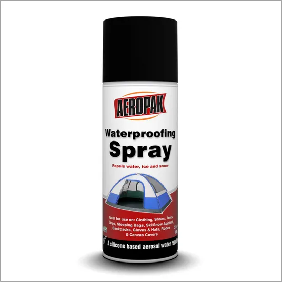 Waterproof Spray Aeropak Waterproof Spray is a water-repellent liquid that is very effective. It never disappoints and will keep your surfaces at home or at camp completely dry. The best surfaces to use this waterproof spray on include leather, breathable materials, and canvas. You can also use it for tents, patio furniture, boat covers, boots, hunting apparel, backpacks, and tarps. Whether the surface was waterproof previously or not, this waterproof spray gives you excellent results.