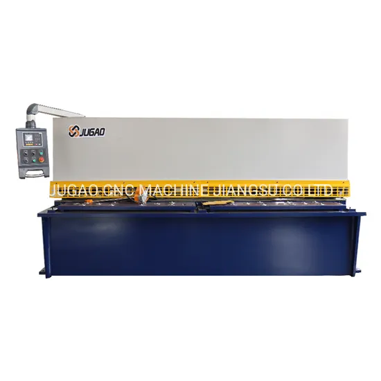 JUGAO hydraulic metal cnc swing beam shearing machinery new iron plate cutting machine 1. Hydraulic transmission, pendulum-type tool holder. The overall welding of the frame is hard and durable, and the use of a nitrogen cylinder returns smoothly and rapidly.