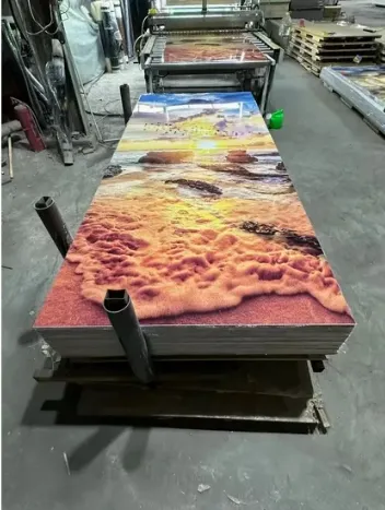 UV wall panel(indoor) contains five parts:PE film+UV coating+Heat transfer film+PVC-stone board+Adhesive layer